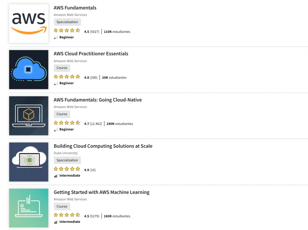 No obstante, los de Coursera tienen un importantísimo plus: son creados e impartidos directamente por Amazon Web Services.